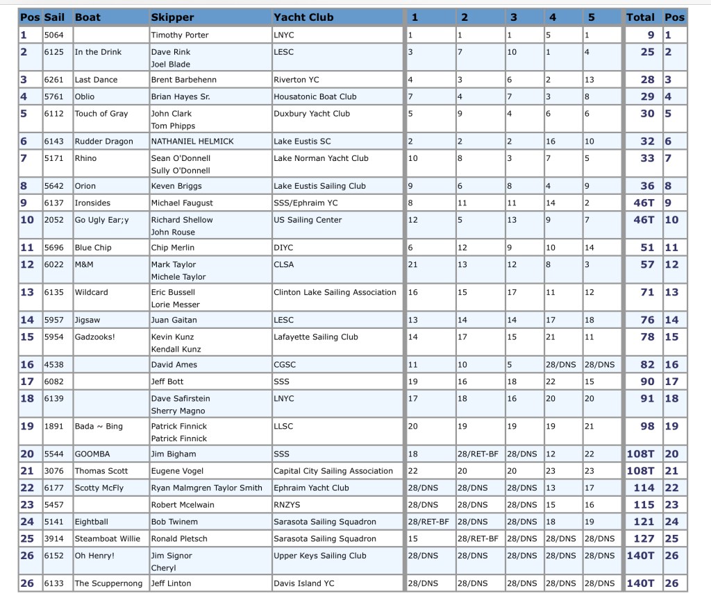 Here’s a copy of the overall results for this regatta: