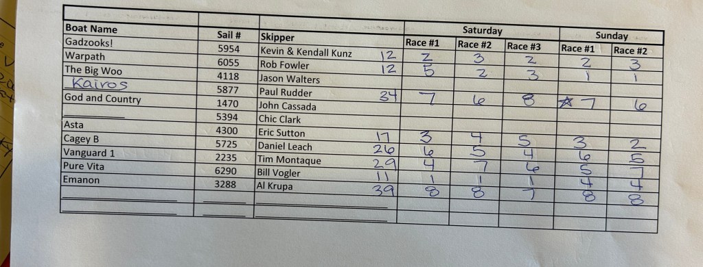 This was our final regatta of the year. Brother Kendall will be undergoing a major medical procedure in late October and needs recovery time. And, Brother Kevin has many things to complete before winter hits in the midwest. We intend to be back on the water at the George Washington Birthday Regatta in mid-February at Lake Eustis Sailing Club. Until then, Gadzooks! will get a bottom refinishing, and some new rigging, as well as a new jib. We have a full sailing schedule already planned out for 2025, and will discuss in our Season Reflections post.